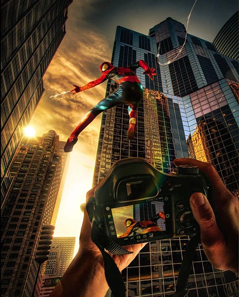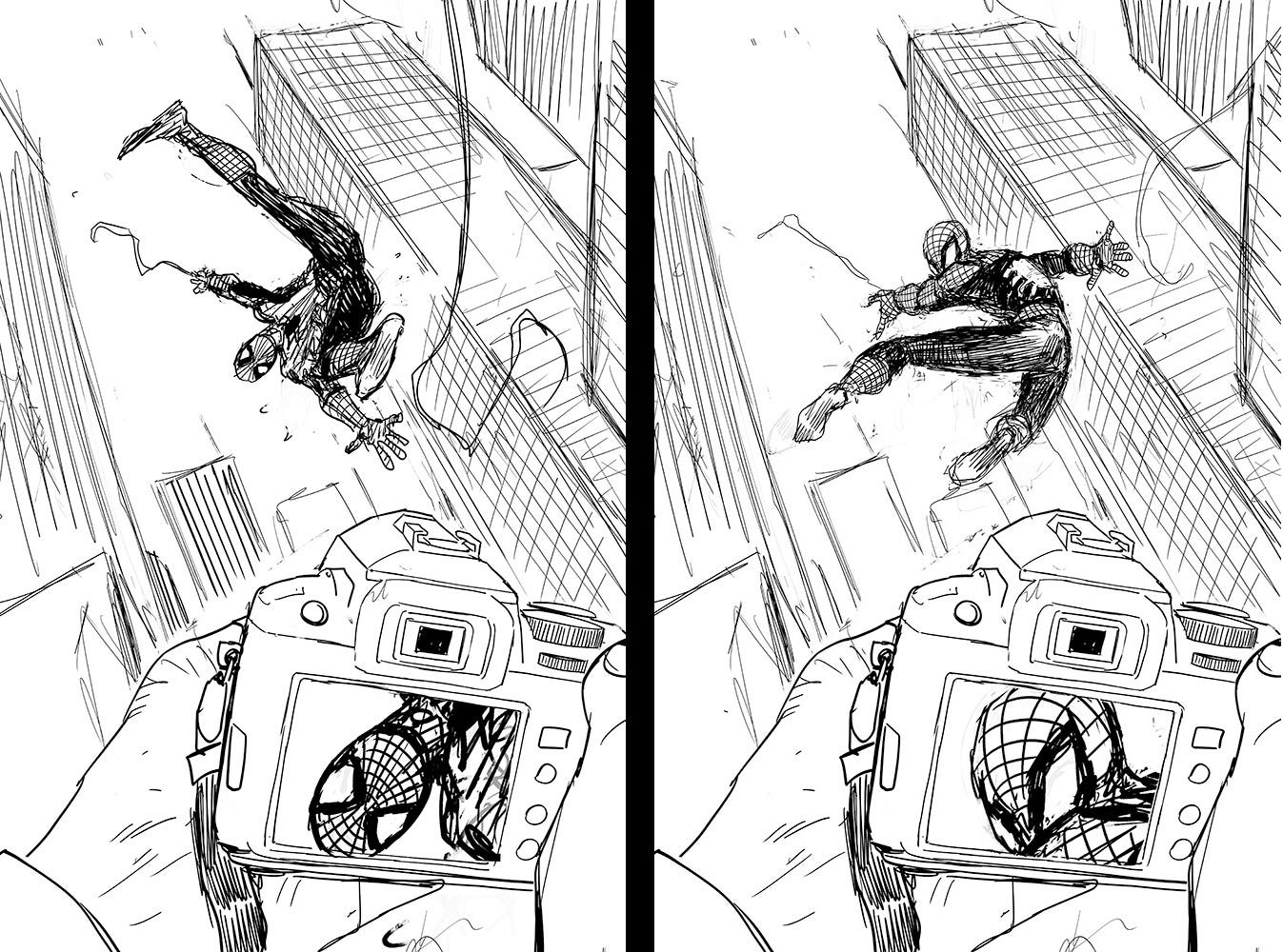 The good news is that I Photoshop less and less these days. Most of the Spectators pages look almost exactly like their original counterparts. Just to give you an idea of the difference, here’s what the original art of that Spider-Man cover looks like: