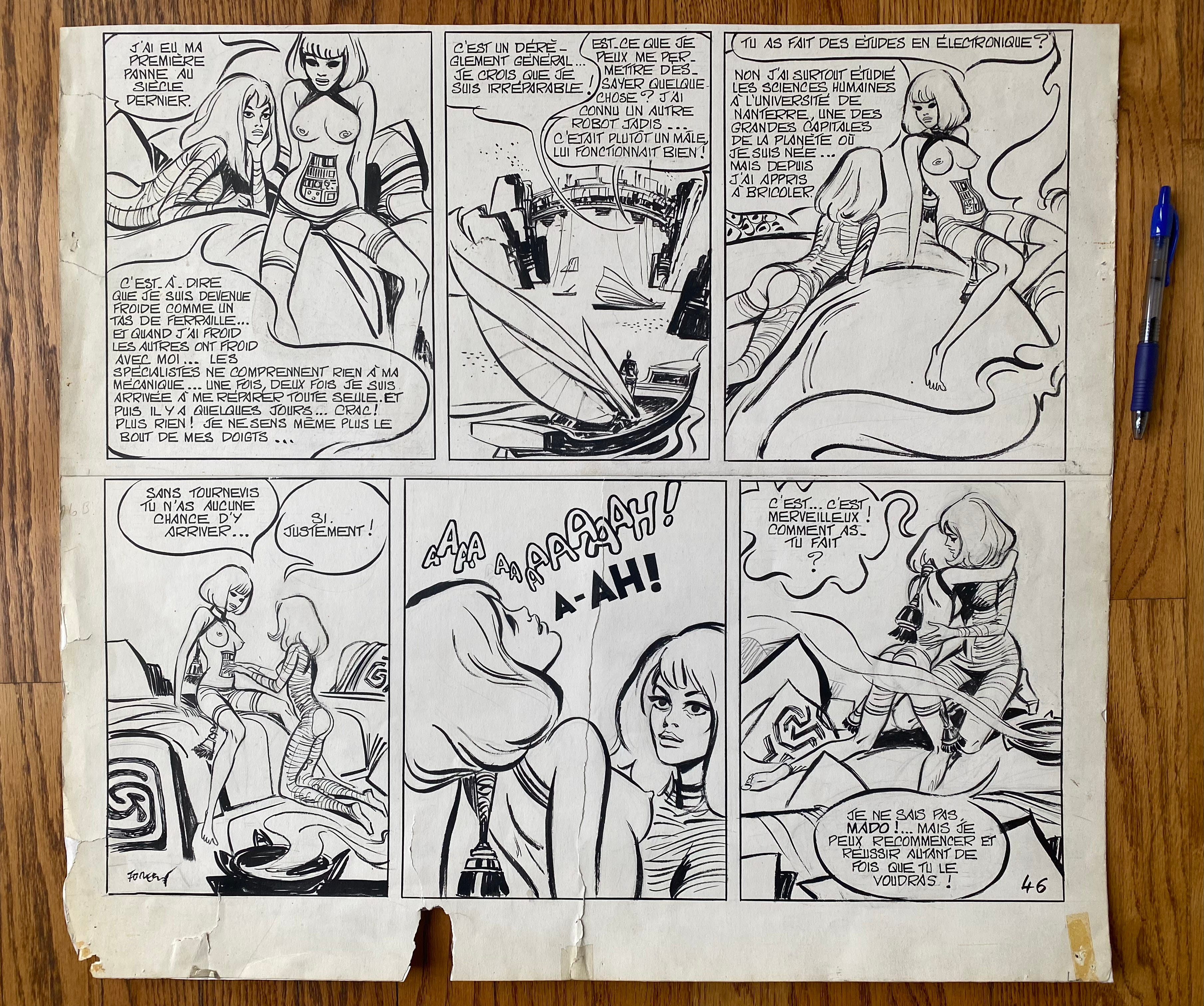 This week, I’ll be flaunting some of my more recent finds, like this massive 1974 page from Barbarella creator Jean-Claude Forest that I already shared with the Tower: