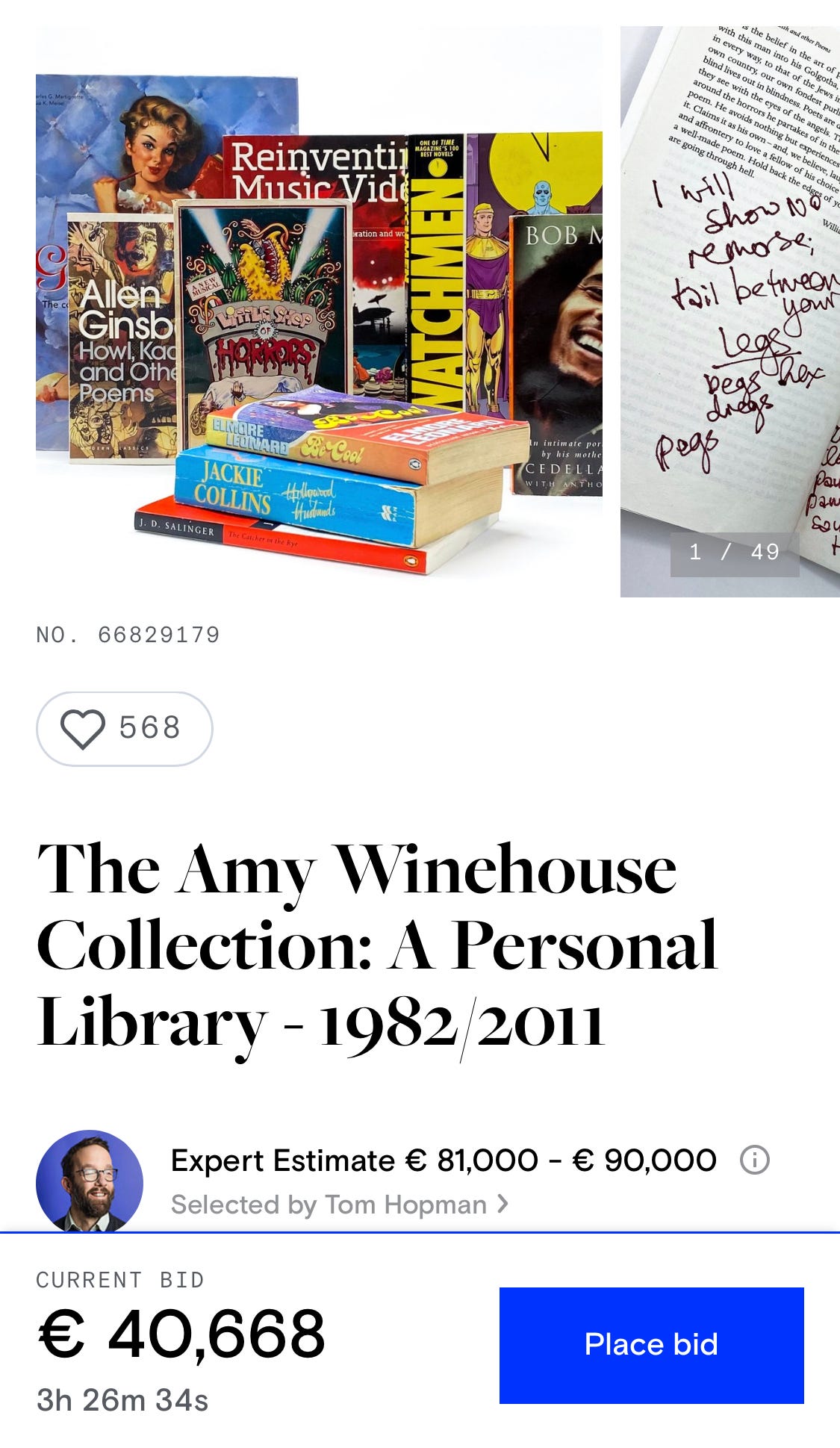 Sorry if you were hoping to get your hands on the 230 books that once belonged to the late, great Amy Winehouse (including dozens of graphic novels), but that auction apparently closed yesterday.