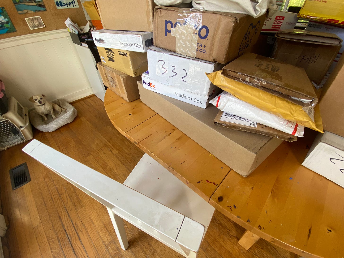 Here’s my #2 dog Milkshake looking at me with disappointment for having only made my way through about half of our last round of signing submissions so far. Thanks for your patience as I gradually work my way through this mega-pile, and if you already received your goods back, please let us know in the comments, if only to give your fellow Tower pals some hope that they too shall one day see their crap again.