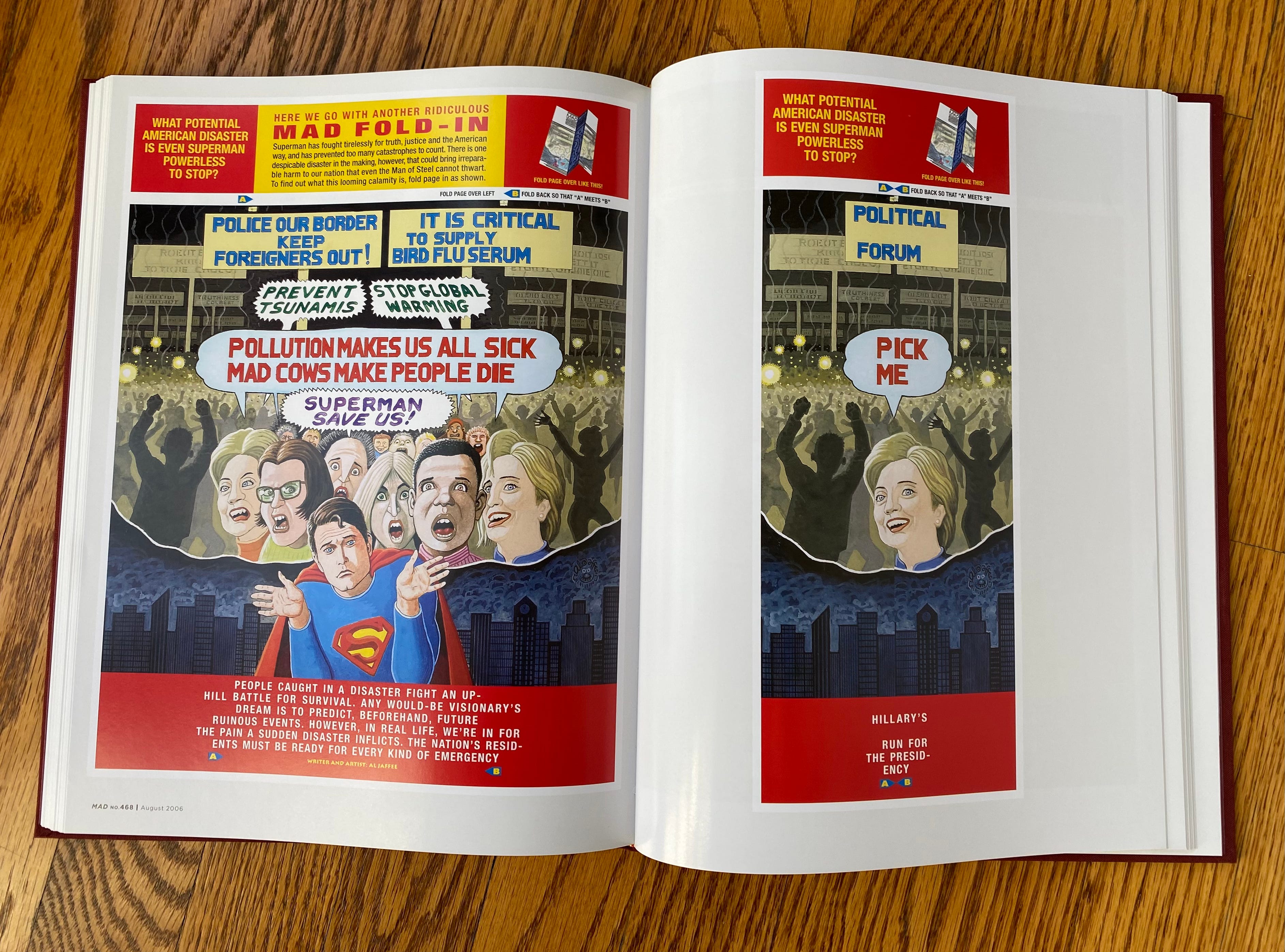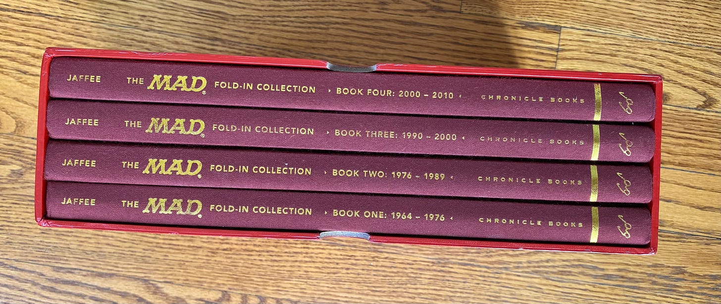 Sadly, this is all just supposition, as I haven’t been able to find this image used anywhere, in analog or digital formats. It was probably unpublished… but, if YOU have any information about where this Fold-In may have appeared, the first person to share accurate intel in the comments will win this massive, out-of-print, hardcover collection of nearly 50 years of Al Jaffee Fold-Ins: